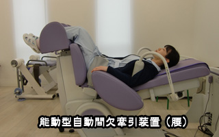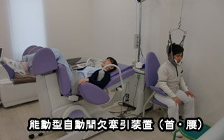 椅子に座った姿勢で、そのまま牽引。腰を自動で間欠牽引します。