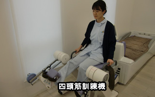 膝に痛みがある方に用います。おもりを使い太もも前面の筋肉(大腿四頭筋)を鍛えることによって膝への負担を軽減させます。