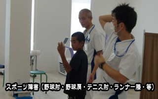 ・スポーツ障害(過剰な練習等による)、野球肩・野球肘・サッカー膝・ランナー膝・半月板損傷・靭帯損傷 等を診療します。