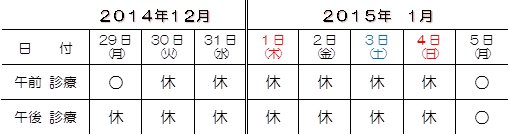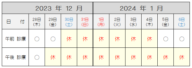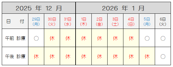 12月30日(火)~1月4日(日)(全日休診)