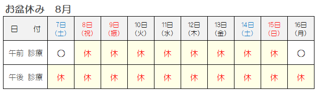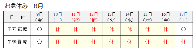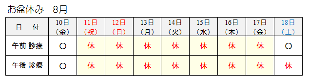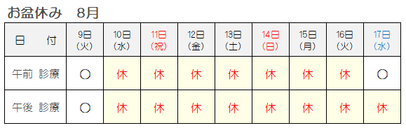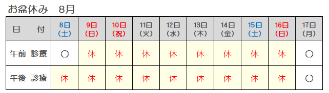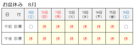 尚、当院ではお盆期間中は通常通り診察・診療を行います。