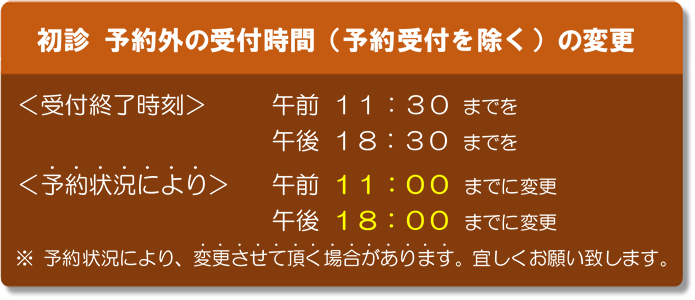 ・土曜日の初診・予約外の受付を 11:15 までとさせて頂きます。